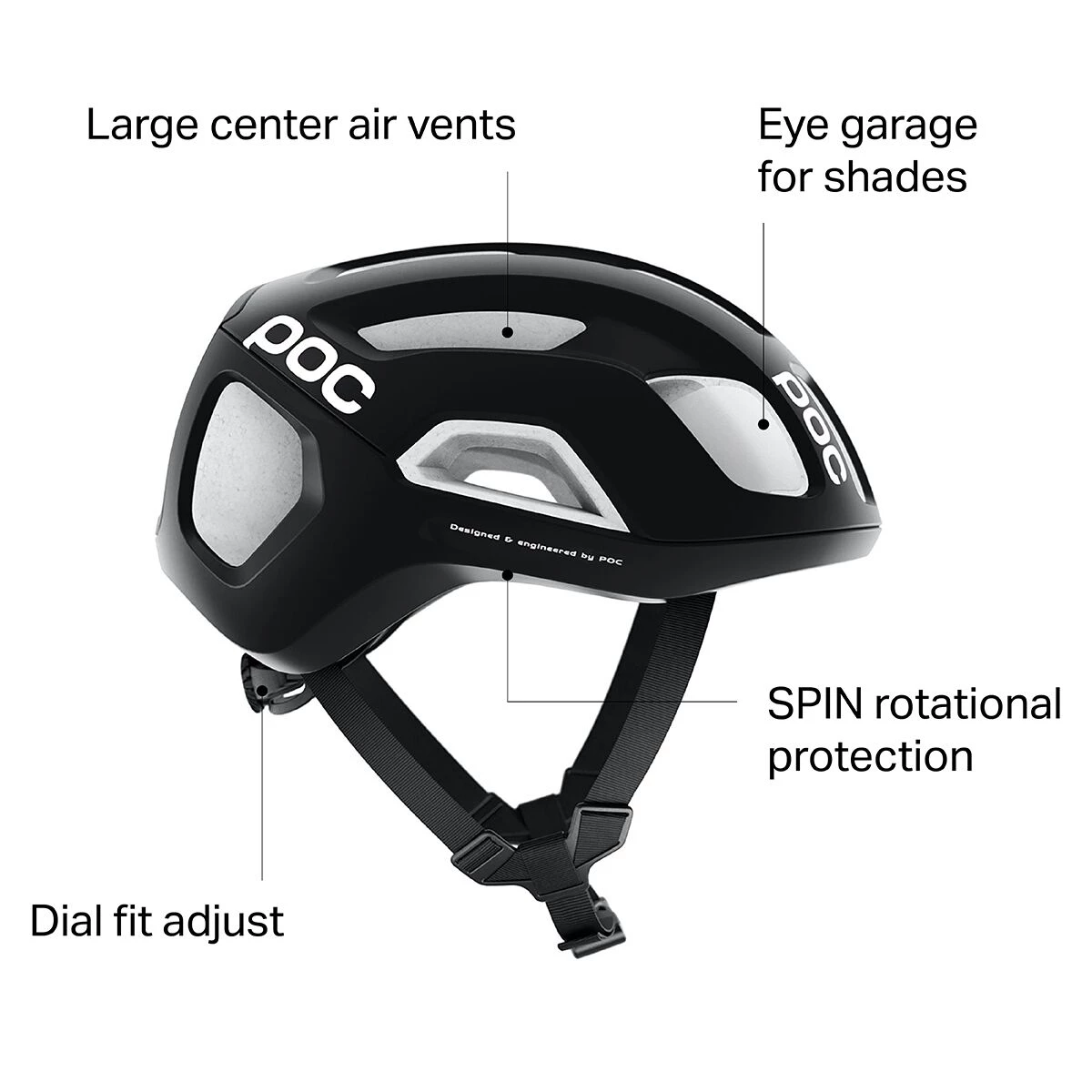 The Ventral Air SPIN is a next generation performance helmet that keeps you thinking cool when the pressure mounts. POC is known for their over-sized venting holes β think back to the award-winning POC Octal β and the SPIN proudly continues this effective design for 2020. Any skepticism regarding the visually peculiar design is quickly exhausted during warm days where the ride route shapes a love-hate relationship with the little ring and offers only a smattering of trees for shade cover. The upgraded ports and channels on the ventral side of the SPIN funnel air below the ceiling of the helmet, maximizing air movement over the head and reduce the buildup of warm air against the scalp.