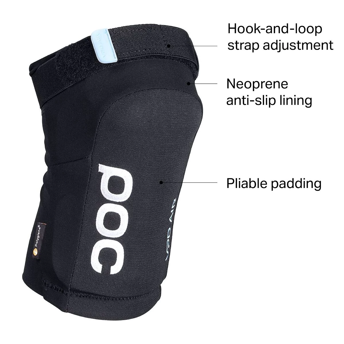 Slip your knees into the POC Joint VPD Air Knee Pads for a lightweight, flexible knee pad that won’t restrict pedaling on longer trail rides with lots of climbing. Its VPD padding absorbs impact, should you take a nasty spill on the trail. The reinforced stretch fabric and neoprene anti-slip lining keep the pad firmly in place without limiting your range of motion. Additionally, you’ll find an elasticized hook-and-loop strap for a secure, customizable fit.
